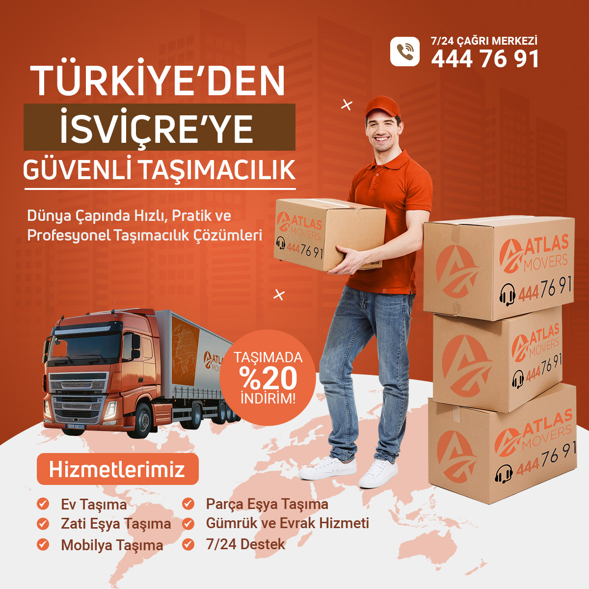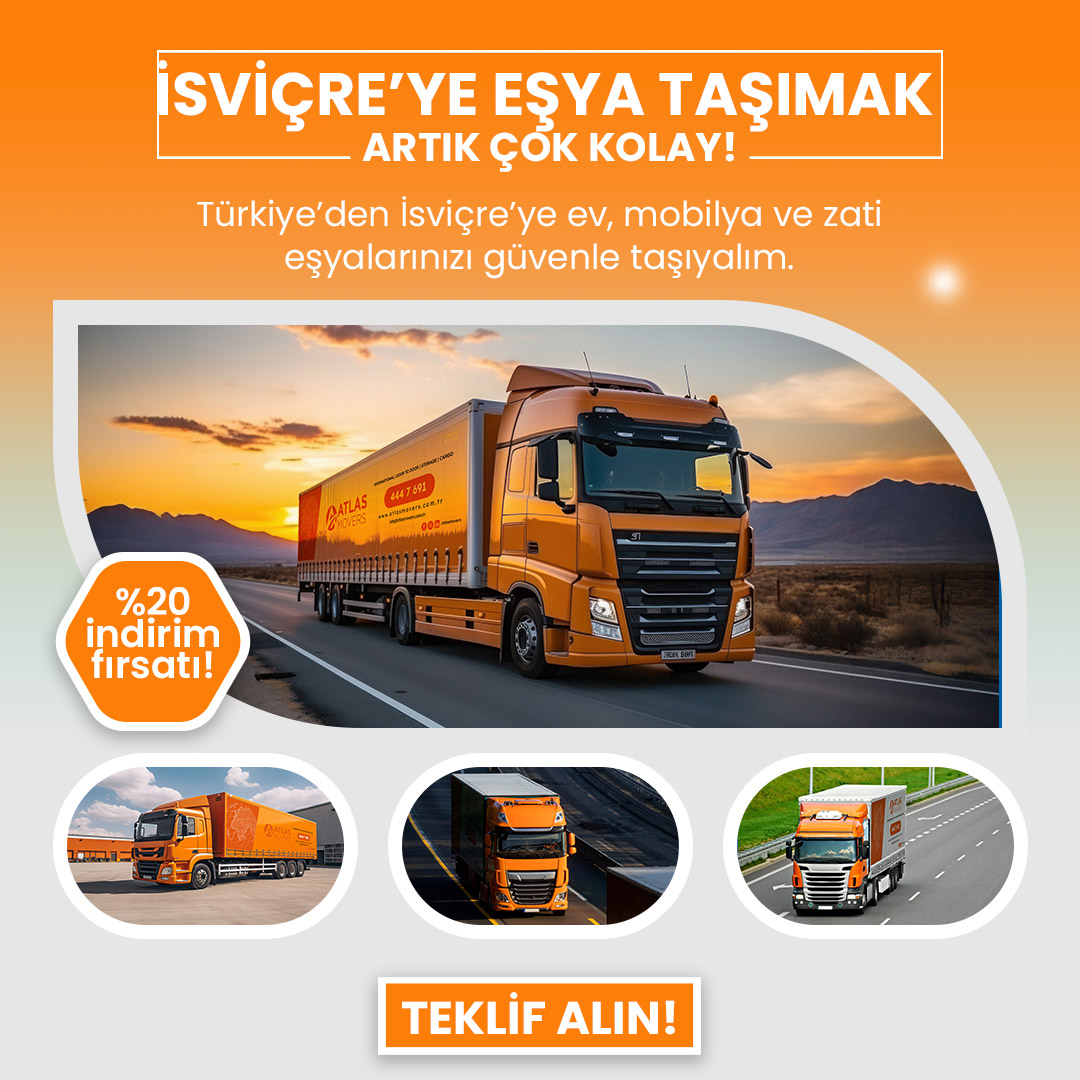 İsviçre’ye taşınırken profesyonel destek almak, tüm süreci sorunsuz ve güvenli hale getirir. Atlas Lojistik olarak, Türkiye’den İsviçre’ye ev taşıma sürecinizde yanınızdayız. Hızlı, güvenilir ve gümrük süreçlerine hakim uluslararası taşımacılık hizmetimizle; eşyalarınız zamanında ve sorunsuz şekilde yeni adresinize ulaştırılır.